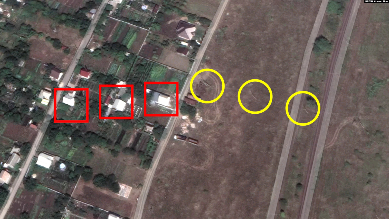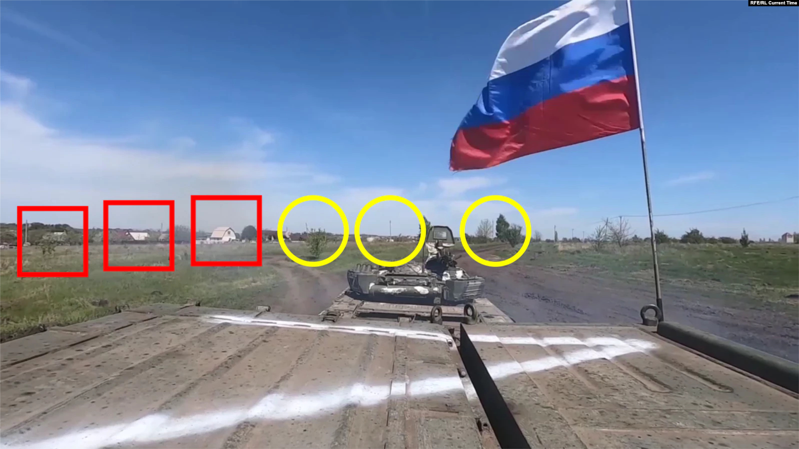 Крім того, на самому відео за танком на обрії видно приміщення військової частини та споруди садового товариства "Фазенда". Журналісти порівняли кадри з відеозапису міноборони РФ зі знімками полігону із супутника.