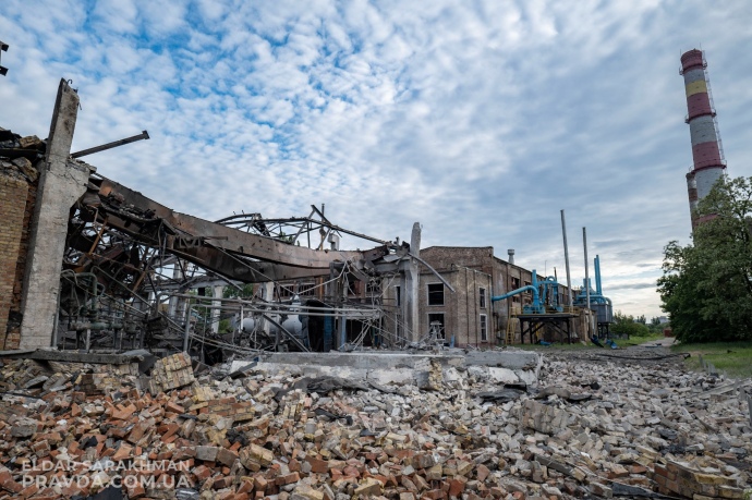 Територія заводу встелена склом, рештками вікон і елементами м'якої покрівлі зі знищених цехів.