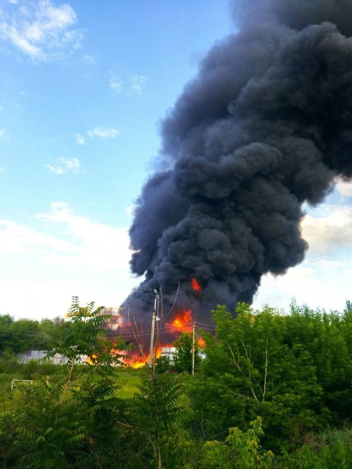 На місці події працюють відповідні служби, вогнеборці локалізують займання складських приміщень площею 600 кв м. Дані щодо постраждалих уточнюються".