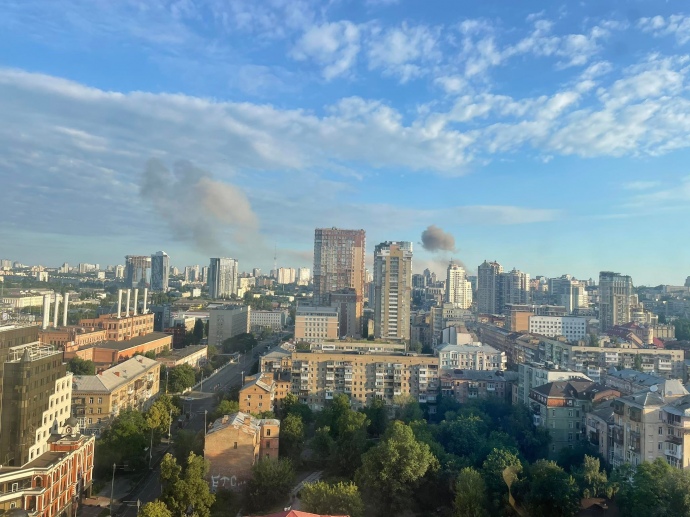 У Києві близько 06:20 ранку неділі 26 червня пролунали вибухи, у 9-поверхівці російська ракета зруйнувала верхні поверхи, сталася пожежа.