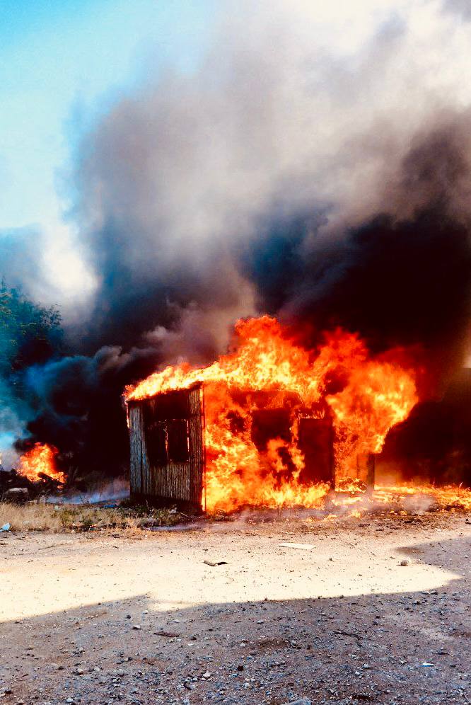Пряма мова Андрющенка: "На Східному в Лівобережжі окупанти-мародери влаштували міні-серіал награбованого в складі СТО. Вчора близько 17:00 награбоване разом зі складом раптом запалало. "МЧСники" прилетіли рятувати "власне" майно, але не встигли".