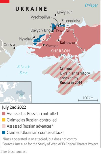 Те, що зараз відбувається, ще не схоже на повноцінний контрнаступ. Україна як і раніше зосереджена на тому, щоб зупинити неухильне просування Росії на сході – 2 липня її війська відступили від Лисичанська в Луганській області – і її південне угруповання не має переваги у співвідношенні три до одного, яку рекомендують стратеги для успішного наступу. Солдати скаржаться на критичну нестачу боєприпасів і піхоти".