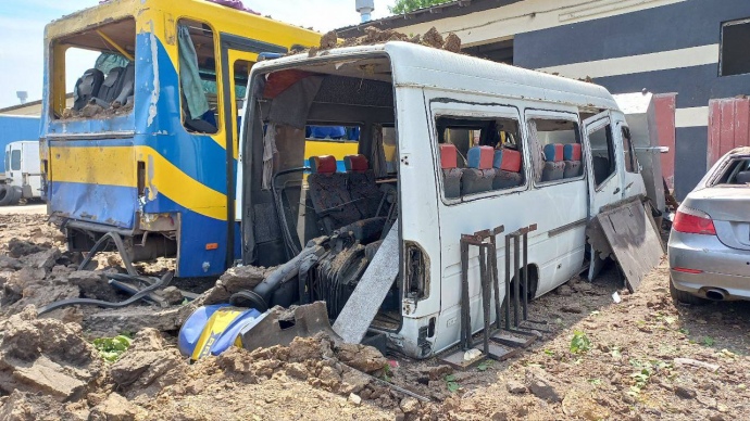 Також ракета влучила на територію приватного підприємства – там пошкоджень зазнав автопарк, а в гаражі повилітали вікна.