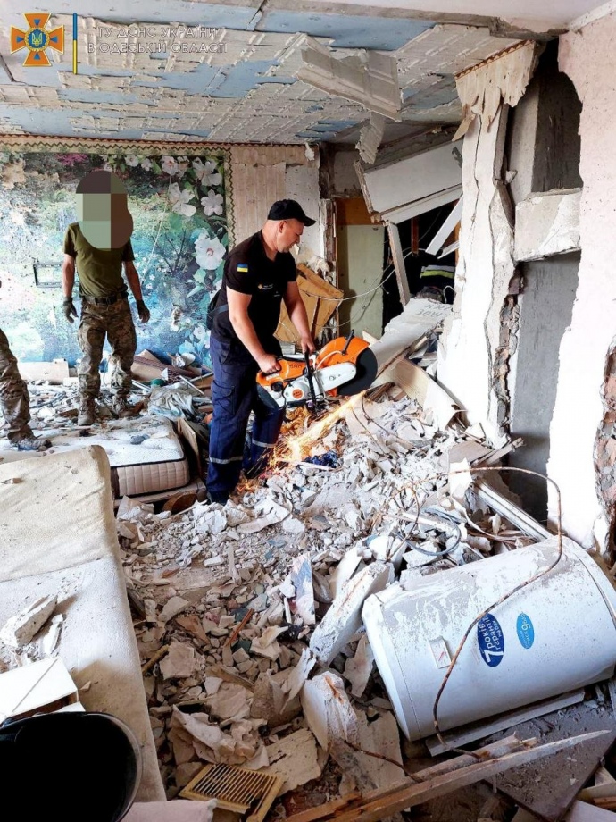 Рятувальники розбирають завали після влучання російської ракети у житловий 9-поверховий будинок у смт Сергіївка Одеської області. Відео ДСНС pic.twitter.com/SoOGsf1QHQ