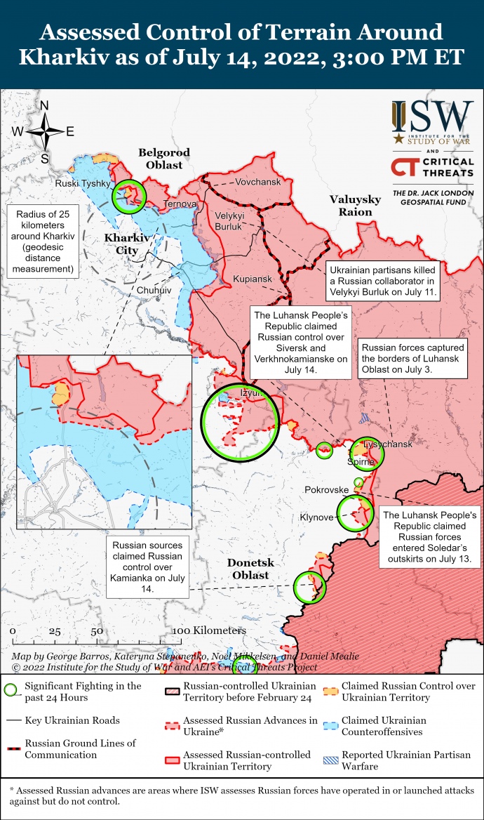Росіяни, імовірно, незабаром почнуть більш масштабний і рішучий наступ уздовж лінії Слов'янськ-Сіверськ-Бахмут.