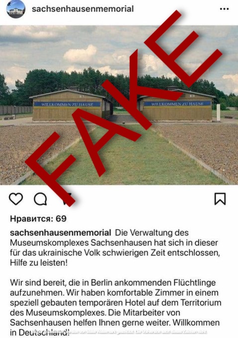 Німецька поліція проводить розслідування стосовно дезінформації у Telegram-каналах, яка поширює неправдивий Instagram-пост про те, що меморіал у колишньому концентраційному таборі Заксенхаузен під Берліном використовуватиметься для розміщення українських біженців.