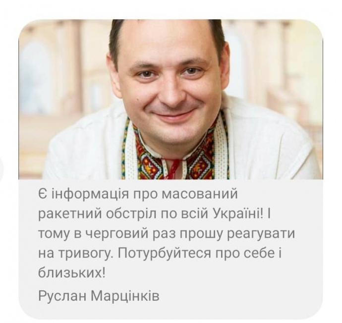 Що передувало: Раніше у суботу міський голова Івано-Франківська Руслан Марцінків опублікував пост у Facebook і Telegram про те, що нібито готується масований ракетний удар по Україні.