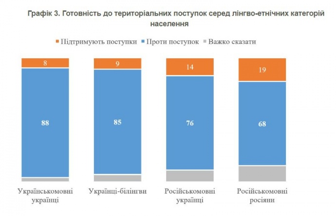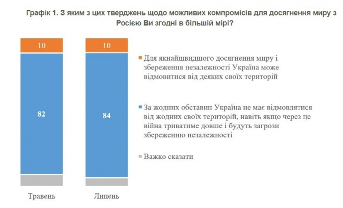 Деталі: Для 84% респондентів жодні територіальні поступки не є припустимим.