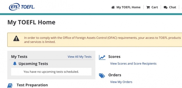 На прохання кореспондентки "Медиазоны" в ETS підтвердили, що громадянам та резидентам Росії та Північної Кореї забороняються створювати облікові записи або записуватися на іспит TOEFL.