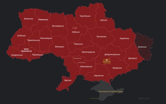 У понеділок ввечері по всій території України, крім окупованого Криму, оголосили повітряну тривогу.