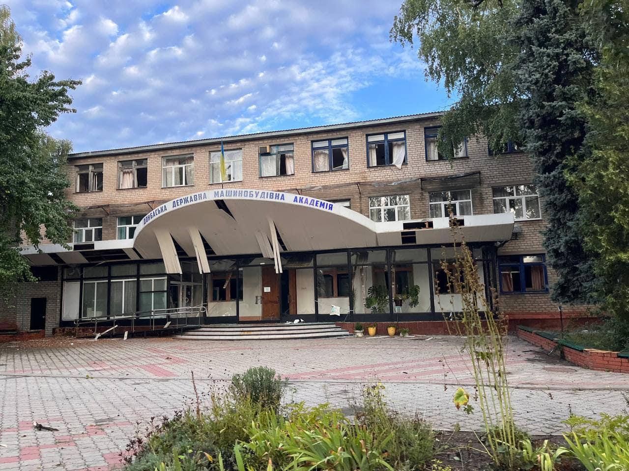 Деталі: Судячи з фотографій, постраждали Краматорський фаховий коледж технологій та дизайну, а також Донбаська державна машинобудівна академія.