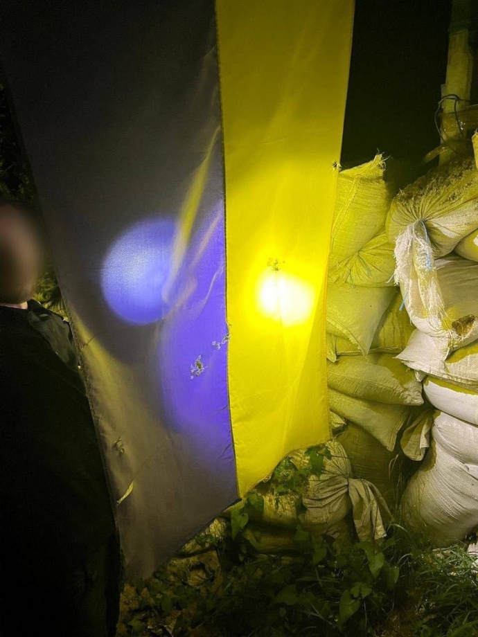 В Обухівському районі Київщини в ніч на п’ятницю затримали чоловіка, який розстріляв державний прапор України і погрожував поліцейським гранатою.