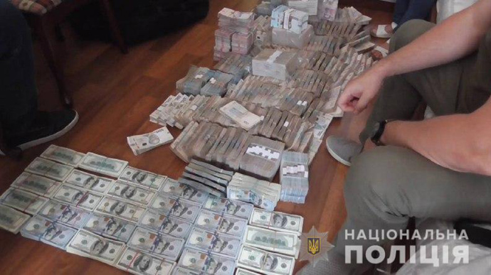 Під час обшуків у зловмисників правоохоронці вилучили 17 млн грн, 400 тисяч доларів, 100 тисяч євро, "чорнові" записи, документацію.