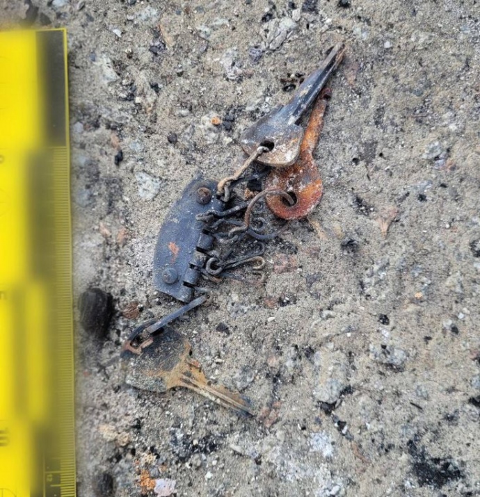 Деталі: На місці злочину окупантів правоохоронці виявили 2 ланцюжки, хрестик, шестикутну зірку, заколку та 3 ключі на металевому тримачі.