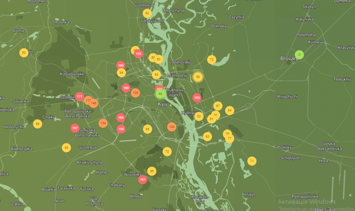 Згідно з даними сервісу IQAir, якість повітря у Києві "помірна".