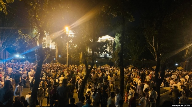 Біля будівлі Національних зборів (парламенту) Вірменії зібралися кілька тисяч людей, які звинувачують прем’єр-міністра Нікола Пашиняна у нібито готовності піти на територіальний компроміс із Азербайджаном.