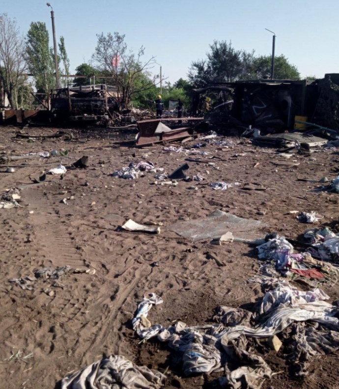 Дослівно СтратКом: "Результат куріння цієї ночі на одній з баз росіян в Новій Каховці".