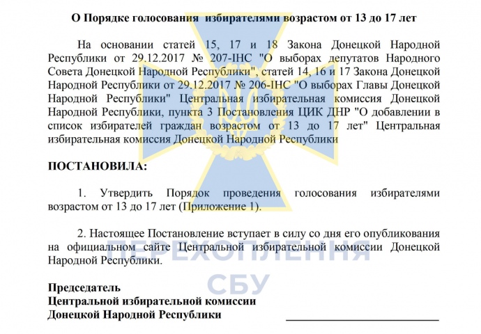 Деталі: Згідно з перехопленими спецслужбою документами, окупанти хочуть задіяти у "голосуванні" дітей віком від 13 до 17 років. Таким чином бойовики намагаються штучно компенсувати катастрофічну нестачу голосів.