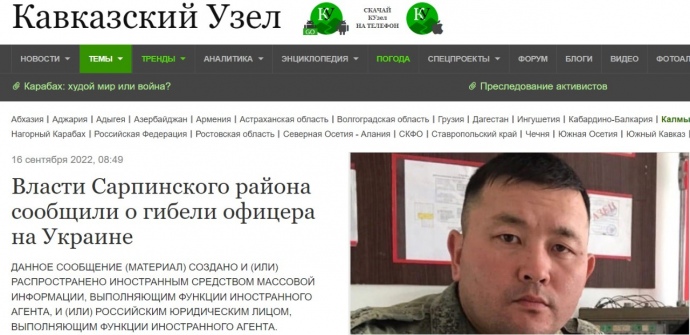 Зокрема 15 вересня ЗМІ та соцмережі повідомили про прощання в Калмикії за участі міських і районних чиновників зі старшим лейтенантом Сананом Басанговичом Санжиєвим. Він був замполітом роти десантників.