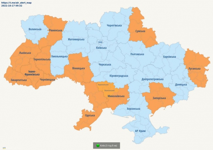Після ранкових атак дронами на Київ та ракетних ударів в об'єкти критичної інфраструктури у Дніпропетровській та Сумській областях повітряну тривогу оголосили по всій Україні.