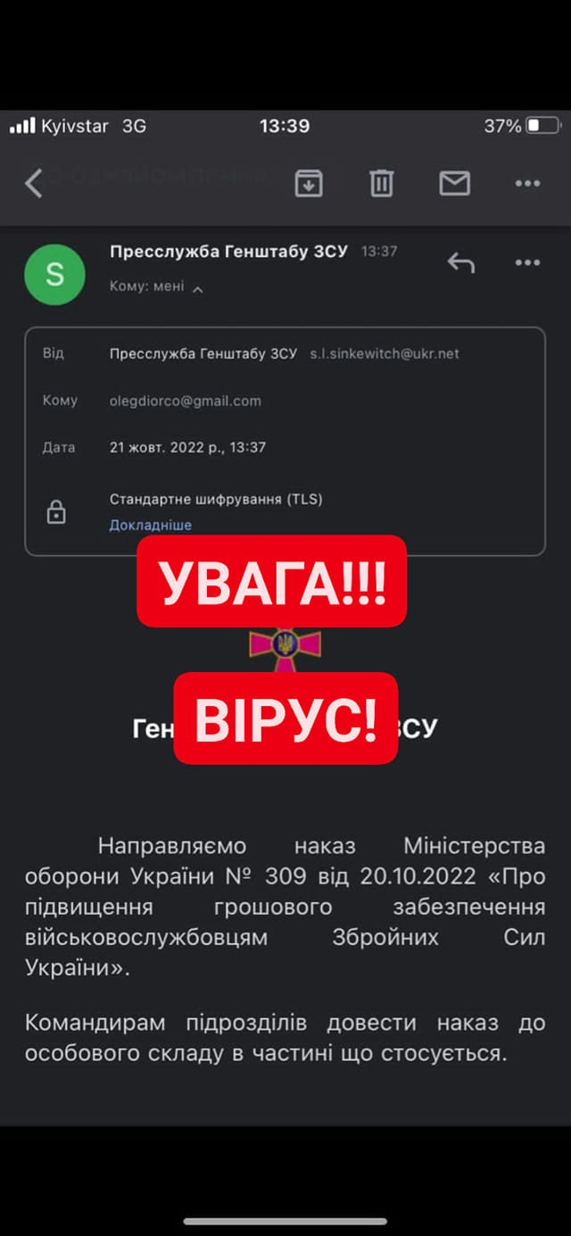 Дослівно: "Останнім часом на електронні скриньки та у месенджери почали надходити листи нібито від пресслужби Генштабу ЗСУ.