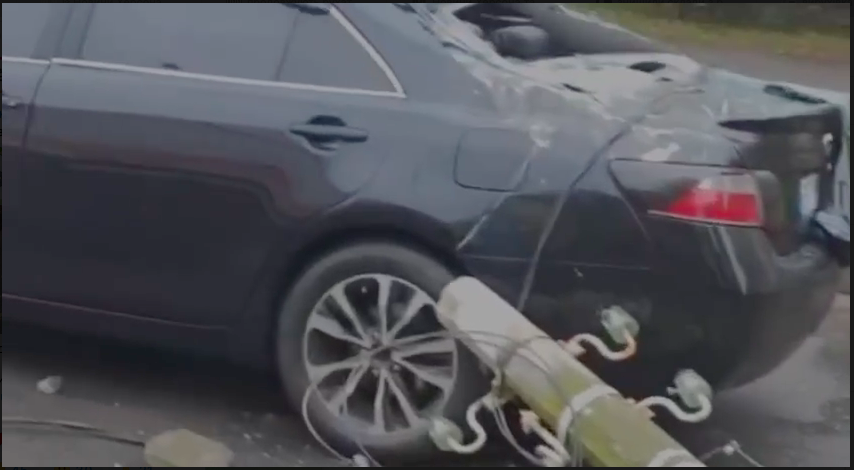 Світлини з місця події підтверджують, що вибухівка була у стовпі: на фото видно бетонний стовп з арматурою, розламаний навпіл потужною вибуховою силою.