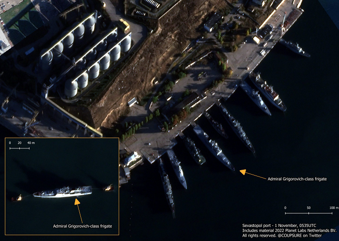 - Розслідувачі групи GeoConfirmed стверджували, що щонайменше три кораблі Чорноморського флоту РФ були вражені безпілотниками 29 жовтня, зокрема флагман "Адмірал Макаров".