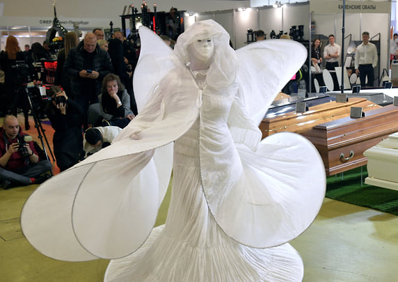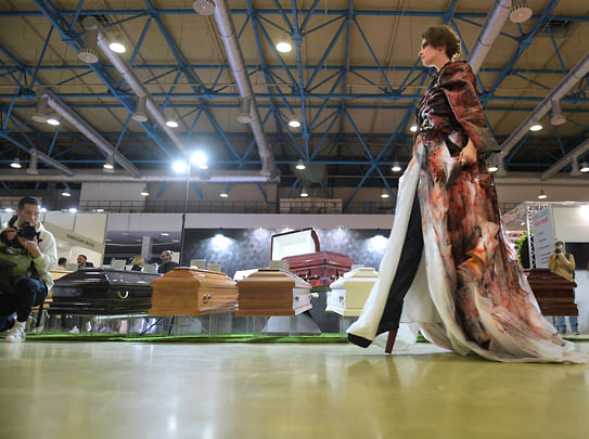 Хлопці в трунах і танці зі зміями: у Москві проходить виставка похоронного сервісу