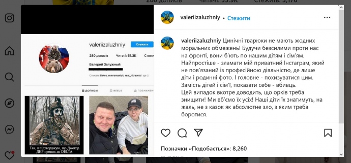 Залужний відповів зламувачам свого Instagram: Цинічні тварюки