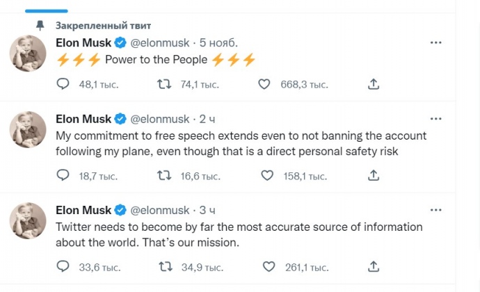 Пряма мова Маска: " Twitter має стати найточнішим джерелом інформації про світ. Це наша місія".