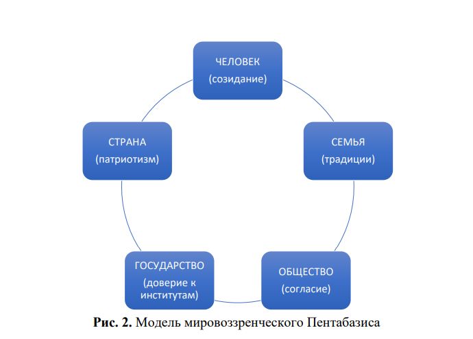 Дослідники за підсумками дискусій сформували п'ятирівневий "пентабазис": людина – сім'я – суспільство – держава – країна. Для кожного рівня було сформовано ціннісні домінанти. Для країни – це патріотизм, для держави – довіра до інститутів влади, для сім'ї – народ Росії, для суспільства – злагода, для людини – творення.