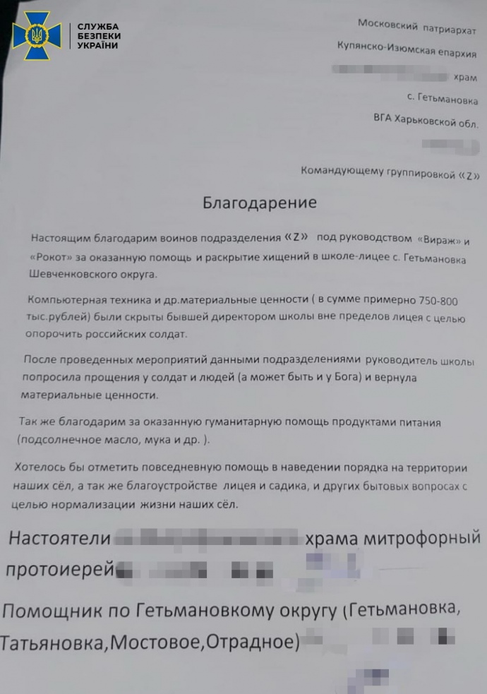 Саме з ним представник УПЦ МП погоджував свої дії щодо використання церкви для залучення громадян до лав ворога і дискредитації Сил оборони України.