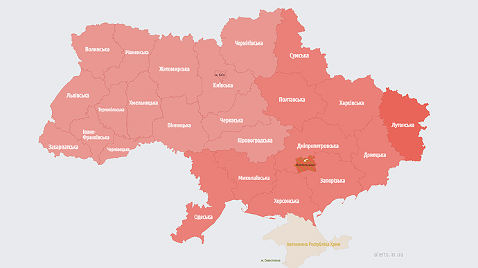 Оновлено: Спершу тривогу оголосили у 15 областях. Станом на 14:45 тривогу оголошено по всій території.