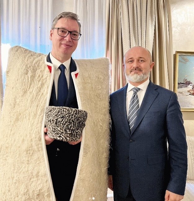 Наприкінці зустрічі Даудов подарував президенту Сербії чеченську національну бурку та папаху. Вучич одягнув подарунок і сфотографувався в ньому.