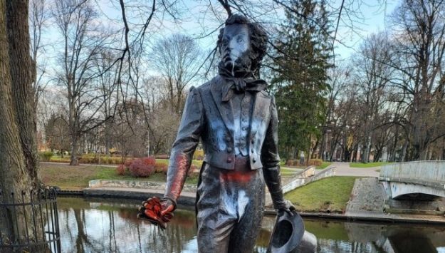 У Ризі сплюндровано пам'ятник російському поету Александру Пушкіну - невідомі облили скульптуру і вказівні таблички фарбою.