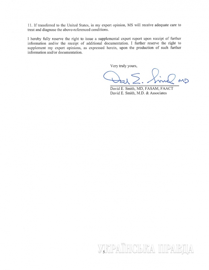 Джерело: медичний висновок Девіда Сміта у розпорядженні Української правди
