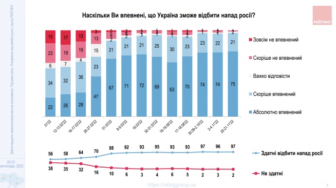 З січня місяця кількість людей, які впевнені у відбитті наступу, збільшилася з 56 до 97%.