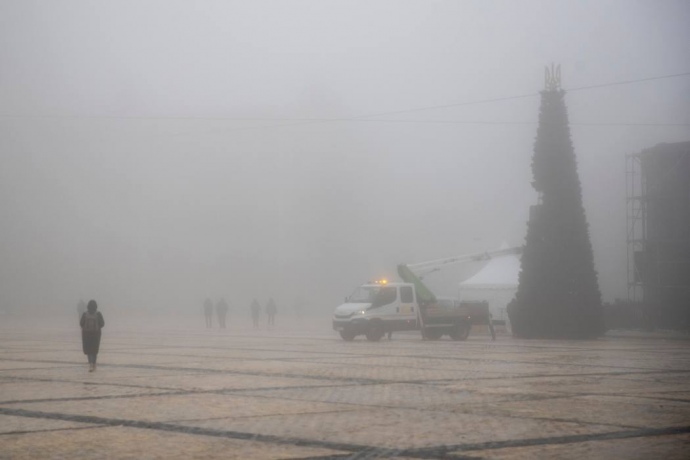Дослівно: "На Софійській площі вже практично змонтували та розпочинають прикрашати символічну ялинку незламності.