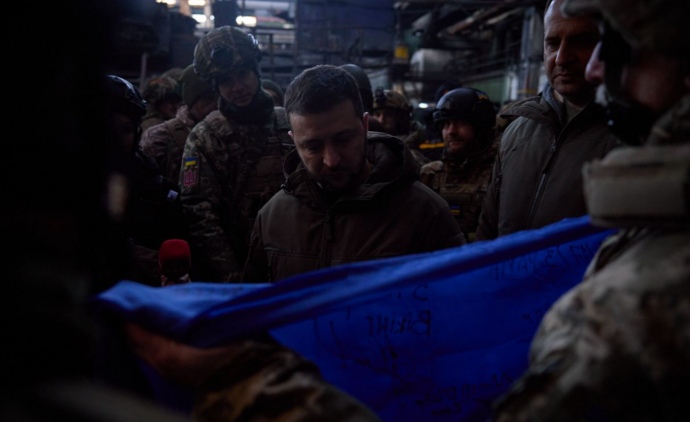 Доповнено: Прессекретар глави держави Сергій Никифоров у коментарі УП підтвердив, що Зеленський побував у Бахмуті. Гендиректор Директорату з питань інформаційної політики ОП Ірина Побєдоносцева повідомила, що Зеленський зустрівся з військовими та нагородив українських захисників. Деталі ОП розповість згодом.