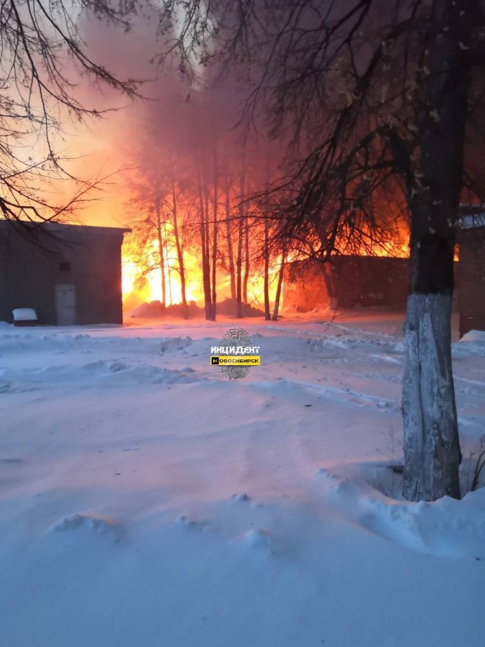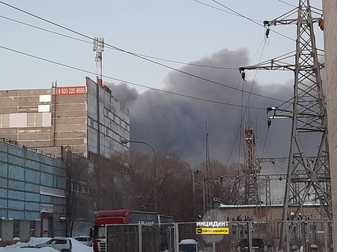 У російському місті Новосибірськ сталася велика пожежа на складах – вогнем охоплено приблизно 1800 кв.м., очевидці повідомили, що чули вибухи.