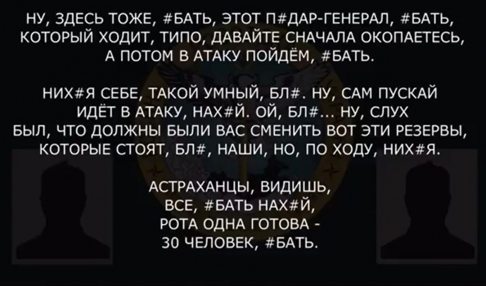 Також росіянина не влаштовують вказівки керівництва, який закликає їх окопуватися і йти в атаку: "50 солдат в батальйоні, генерал каже: "вони (українці - ред.) побачать, що ми в атаку підемо - втечуть".