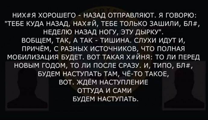 У новому перехопленні розвідки окупант розповідає чутки про повну мобілізацію в Росії та про російське командування, яке дає вказівки "наступати" з мінімальними силами.