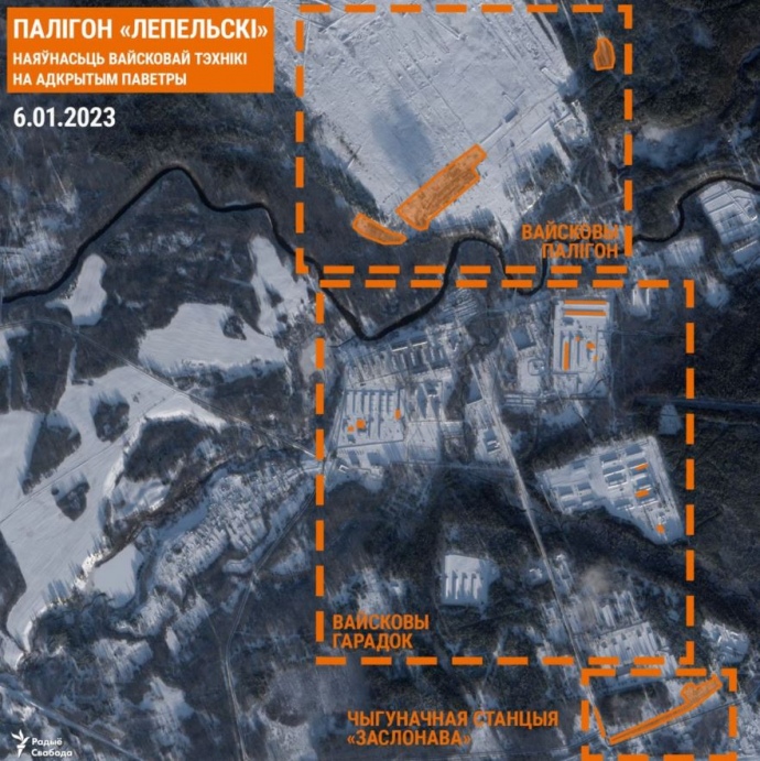 Білоруські ЗМІ опублікували свіжі супутникові знімки полігону 19-ї окремої механізованої бригади "Лепельський" (Вітебська обл.), зроблені компанією Planet Labs 6 січня.
