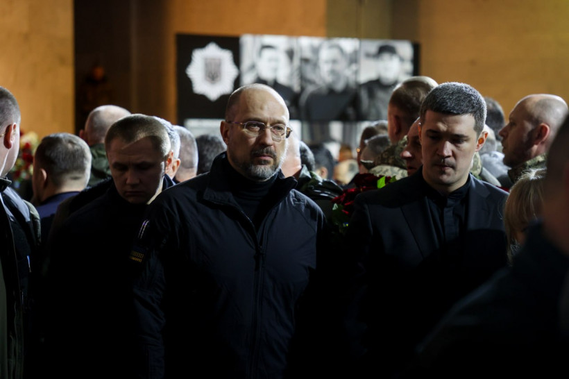 Президент Володимир Зеленський з дружиною, прем’єр Денис Шмигаль та інші посадовці взяли участь у церемонії прощання з керівниками та працівниками МВС, які загинули внаслідок падіння гвинтокрила у Броварах.