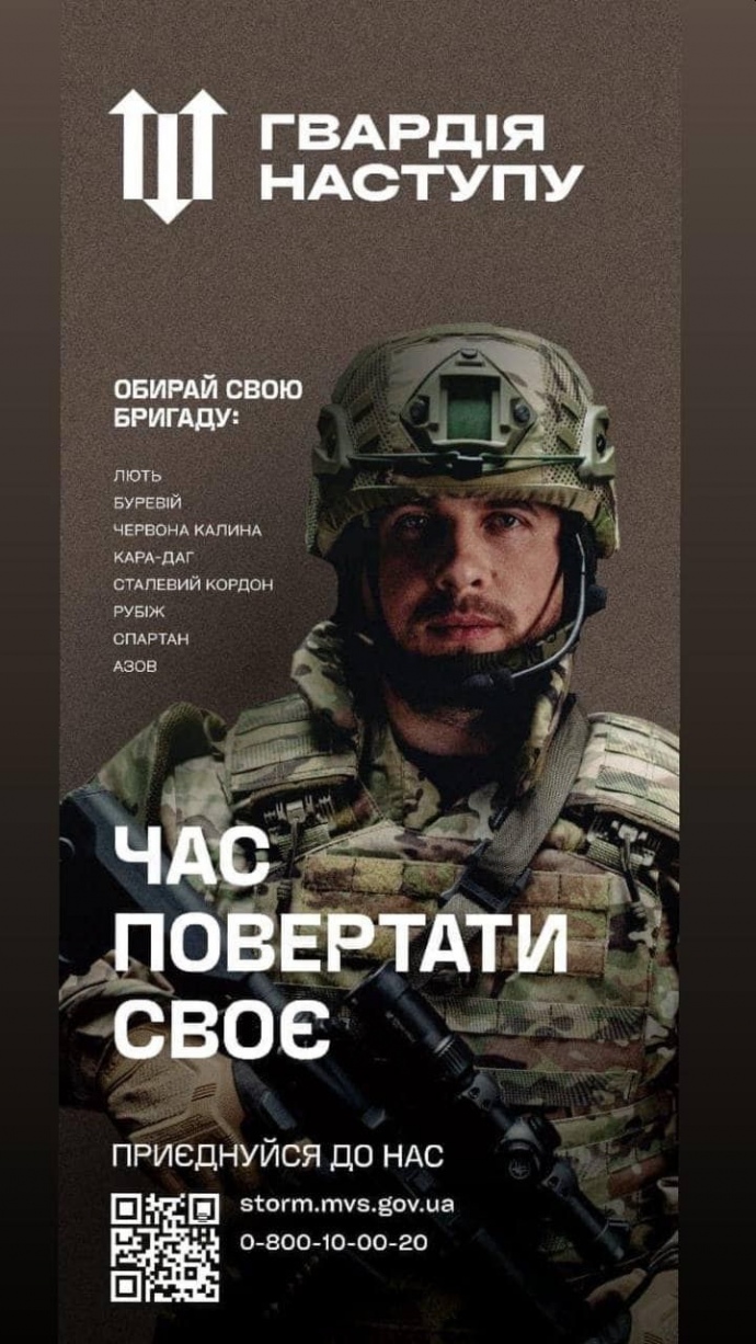 Нагадаємо: До "Гвардії наступу" можна долучитися онлайн на storm.mvs.gov.ua або ж у визначених Центрах надання адміністративних послуг (ЦНАПах). Також працює гаряча лінія для консультацій 0800100020.