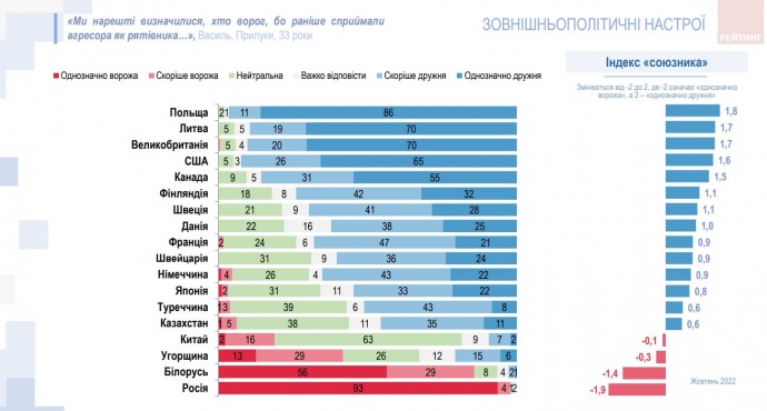 Крім того, громадяни України сприймають Росію та Білорусь як вороже налаштовані країни.