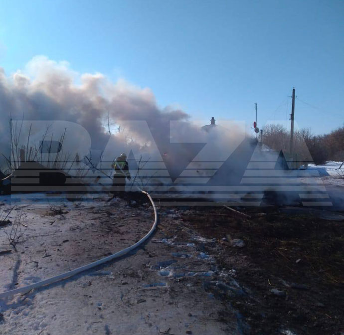 Повідомляється, що штурмовик упав на сарай із сіном, почалася пожежа, споруда згоріла, але пілот нібито залишився живий.
