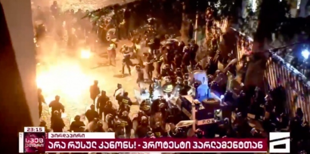 У грузинській столиці Тбілісі у зв’язку з розглядом суперечливого законопроєкту про "іноагентів" тривають протести біля парламенту, їхні учасники застосували проти правоохоронців коктейлі Молотова.