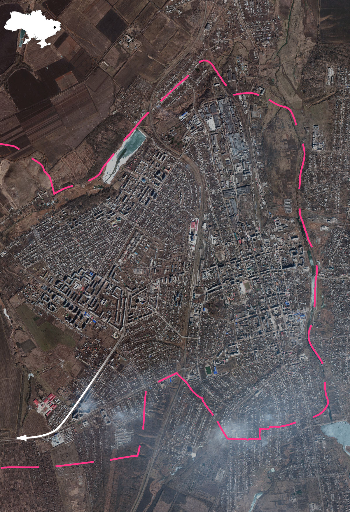 Деталі: Супутникові знімки свідчать, що найбільше постраждала східна частина міста, про захоплення якої оголосили окупанти.