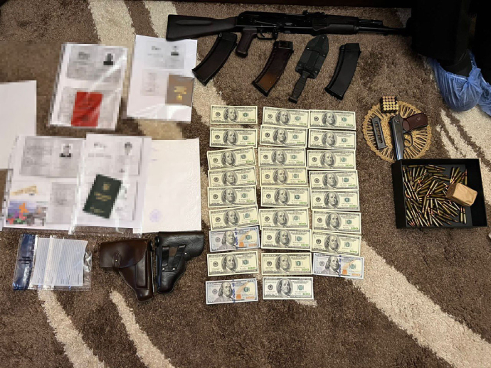 У ході обшуків, проведених за місцем мешкання посадовця, вилучили документи та військові квитки третіх осіб, виписки з медичних карт, аркуші з печатками військових частин РФ, зброю та грошові кошти.